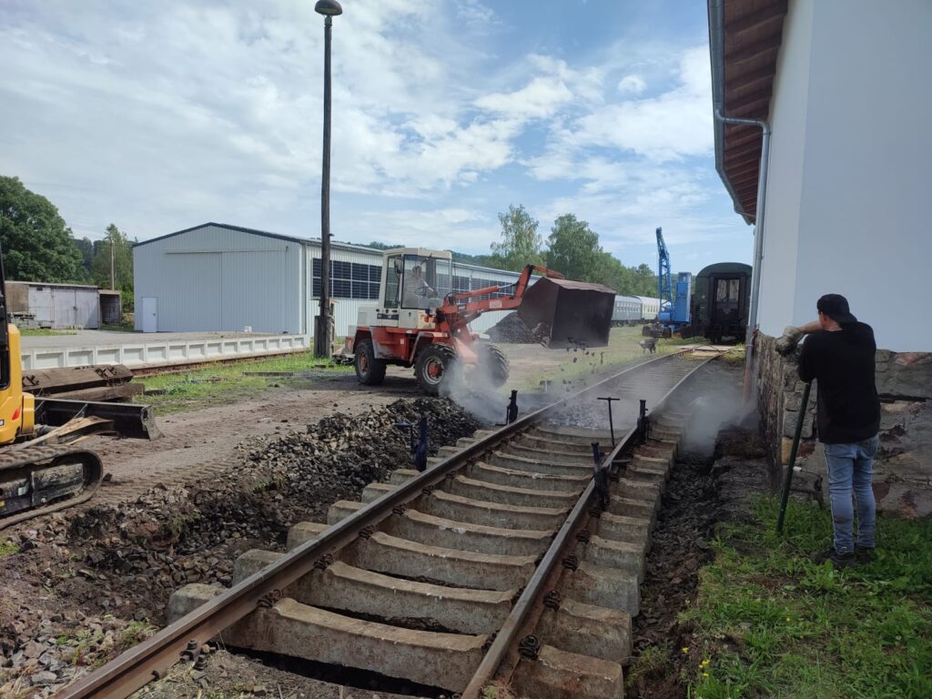 Im Herzen von Sachsen geht es weiter voran. Die Interessengemeinschaft Dampflok Nossen e.V. (IG) hat in diesem Jahr viele Arbeitsstunden an ihrer Infrastruktur erbracht. Unterstützt durch Lehrlinge der Strabag konnten zahlreiche Schwellen gewechselt werden. Gegenwärtig sind noch Restarbeiten an den Strahlengleisen vor dem Ringlokschuppen zu erbringen. Dies war dringend notwendig um die Betriebssicherheit für die Fahrzeuge zu gewährleisten.