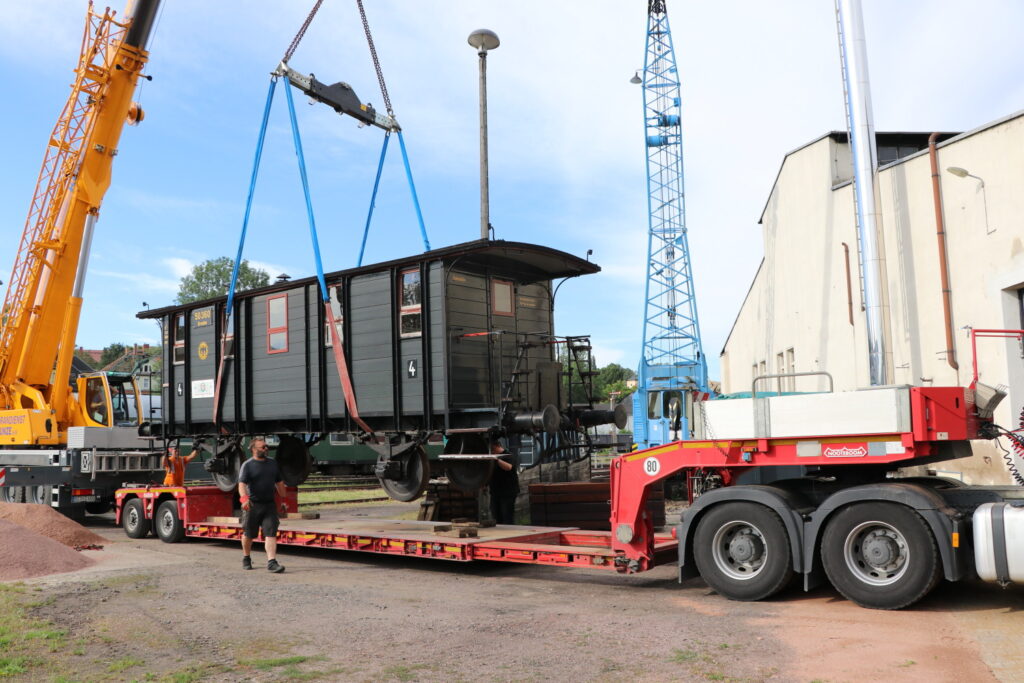 Der in Nossen seit 2015 untergestellte 4.-Klasse-Wagen von Windbergbahn e.V. steht seit Juli nicht mehr in Nossen, sondern wieder in Dresden-Gittersee. Der Wagen soll saniert und betriebsfähig gemacht werden, damit er als Wagen in den Sonderzügen eingesetzt werden kann.